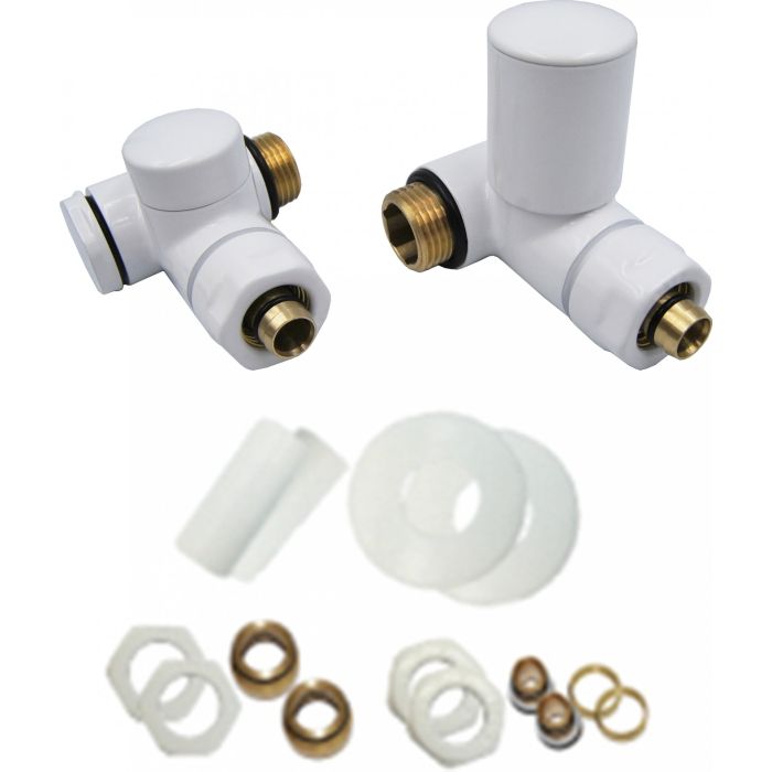 Zestaw grzejnikowy "Integra regulacyjna" do grzejnika w systemie dwu rurowym. Korpus zaworu umożliwia podłączenie grzałki elektrycznej. Głowica regulacyjna. Rozety maskująca podwójna, tuleje maskujące, adaptery/złączki na PEX lub na miedź.